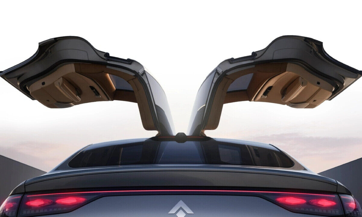 En las vistas laterales destaca el juego de rines de aleación de 19 pulgadas, mientras que en la parte trasera, las calaveras LED le dan a todo el conjunto un toque muy futurista. Pero el verdadero detalle de distinción está en la apertura de las puertas de la segunda fila de asientos, pues se abren hacia arriba, evocando a lo que Tesla ofrece con su Model X, también conocidas como Gullwing Door.