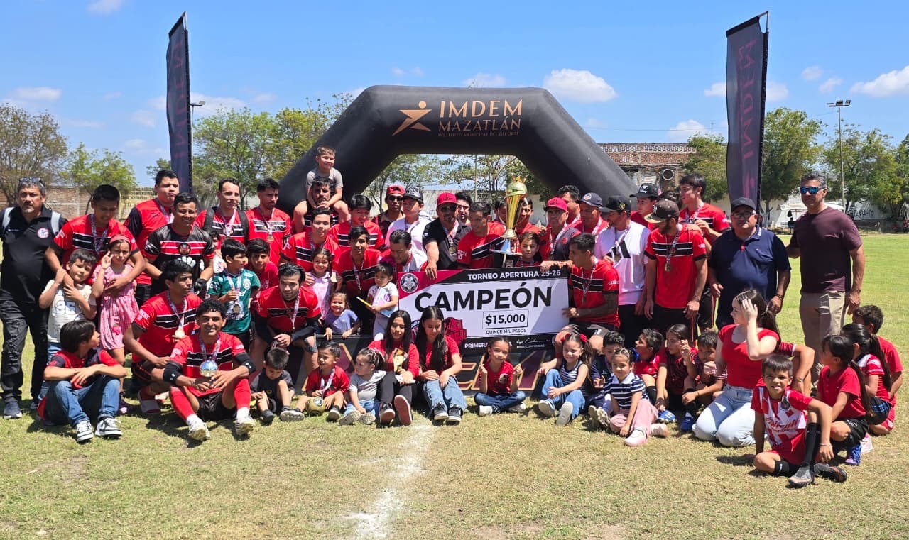 Villa Unión, Mazatlán, Sinaloa a 22 de marzo de 2026.- Con el sello de la casa. Con gol del Alde Millán, Rojos de Villa Unión se coronó campeón de la Liga de Futbol Primera Fuerza Municipal Apertura 2026, al vencer 1 por 0 a Carrillo Capital, en el estadio José Luis “Chile” Gómez.