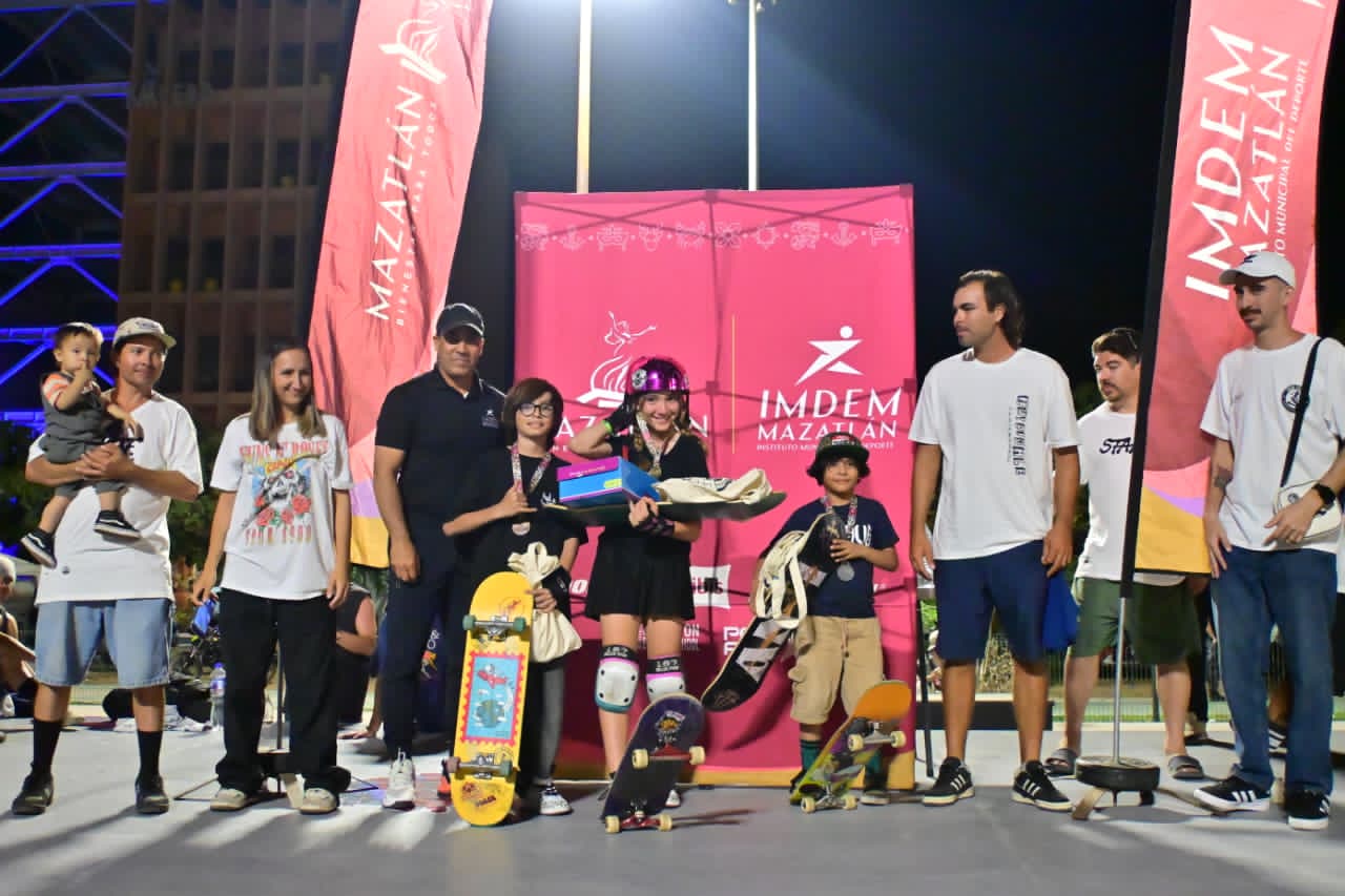 Mazatlán, Sinaloa a 27 de abril de 2026.- Las emociones se apoderaron de la ceremonia de premiacion de la Santa Patinada 2026, que se realizó con el apoyo del Gobierno de Mazatlán que encabeza la Presidenta Municipal, Estrella Palacios Domínguez, en el skatepark del Kilómetro 0, donde se premio a los más destacados de la competencia.