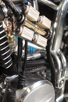 Diseñar un enlace funcional para el amortiguador trasero montado en la parte delantera y hacer que cupiera entre el motor y el escape fue bastante complicado. Lo bueno es que al mismo tiempo fue divertido y permitió el uso del espacio debajo del asiento para el tanque de aceite y todos los componentes eléctricos. La Plan B Motorcycles Flying ’57 tiene una apariencia muy recargada pero ordenada, con un toque de estilo steampunk.