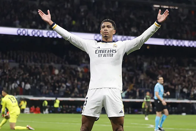 Porque cayó dolorido Bellingham del tobillo, le apañaron lo justo y acudió a remachar el tercero. El gol del cojo. Y el del genio, porque la jugada previa de Vinicius, un uno-dos eléctrico ante Couto no acabó en tanto por la mano de Gazzaniga.