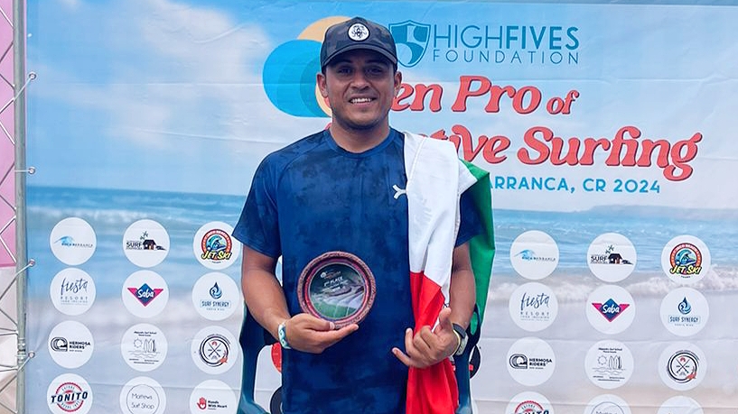 Boca Barranca, Costa Rica a 25 de junio de 2024.- Una emocionante competencia se vivió en el Costa Rica Open Pro Adaptive Surfing, realizado en la costa de Boca Barranca, donde el surfista mazatleco Martín Díaz Martínez logró el segundo puesto en la categoría Rodilla Abajo, con lo que se mantiene en el segundo puesto del Adaptive Surfing World Tour.