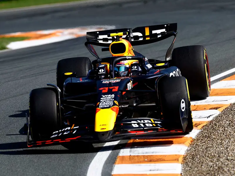 ‘Checo’ Pérez comenzó con buenas sensaciones la práctica 2 del GP de Países Bajos. Se colocó primero en su primera vuelta con llantas medias en un trazado seco, con 1:13.108, pero enseguida Max Verstappen lo rebasó con 1:12.131.