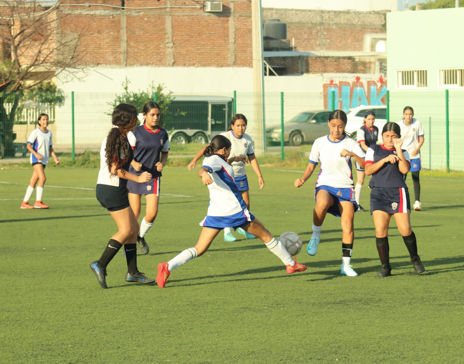 Mazatlán, Sinaloa a 26 de septiembre de 2024.- El futbol 9 femenil de la Olimpiada Deportiva Estudiantil Mazatlán 2024 comenzó su actividad en el campo 2 de la Unidad Deportiva Toledo Corro, escenario en el que los equipos de las escuelas secundarias pusieron todo el empuje, sin olvidar disfrutar la experiencia.