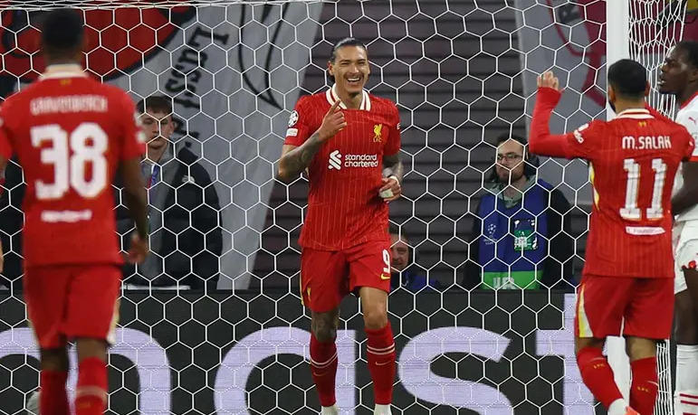 Darwin Núñez apareció en el segundo poste para concluir una vistosa acción de los suyos, en la que movieron el balón a toda velocidad de banda a banda a través del egipcio Mohamed Salah, quien se encargó de otorgar la asistencia.