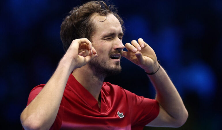 Medvedev, campeón del ‘Torneo de Maestros’ en 2020, dio una imagen muy diferente a la exhibida el domingo, luego de perder contra el estadounidense Taylor Fritz, por 6-4 y 6-3, dando muestras de su mal carácter y desquiciado mentalmente.