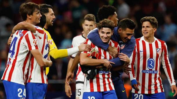 Y apretó el Atlético, más y más de nuevo, cuando Giuliano perdonó el 3-2 solo, contra el larguero, cuando Raspadori remató demasiado cruzado, cuando lo vorágine dirigió al conjunto rojiblanco a la épica, que no habría sido tal sin la calidad de Julián Alvarez. Su golazo, ya en el 88, el tercero suyo del partido, cambió la crisis por la esperanza.